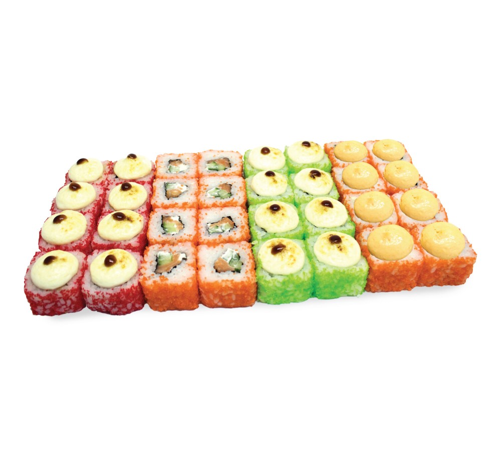 Ролл Лосось Калифорния, ролл спайси Угорь Калифорния, ролл запеченный Калифорния чиз Креветка, ролл запеченный Калифорния чиз Краб