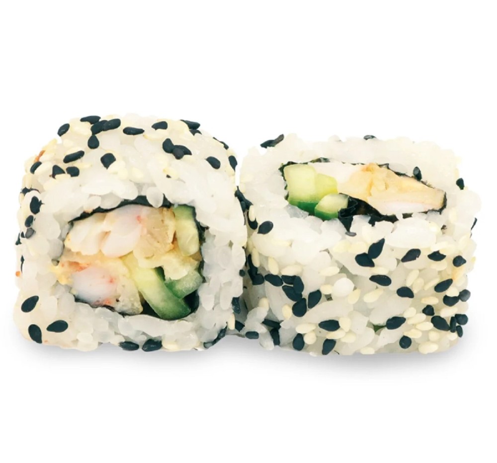 креветка тигровая темпура, соус спайси, огурец, кунжут