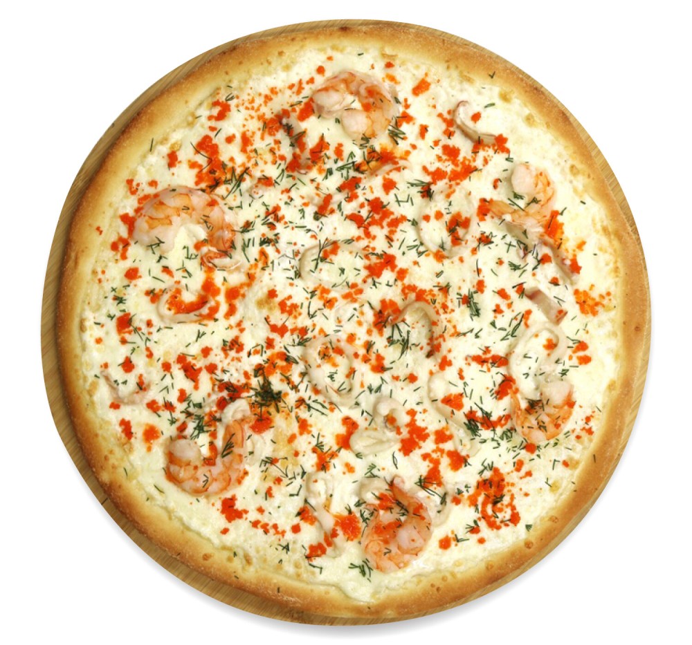 кальмар, креветка, икра масаго, сыр Моцарелла, соус белый, укроп
