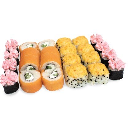 ролл Тонику запечённый, ролл Дуэт, ролл Калифорния креветка запечённый