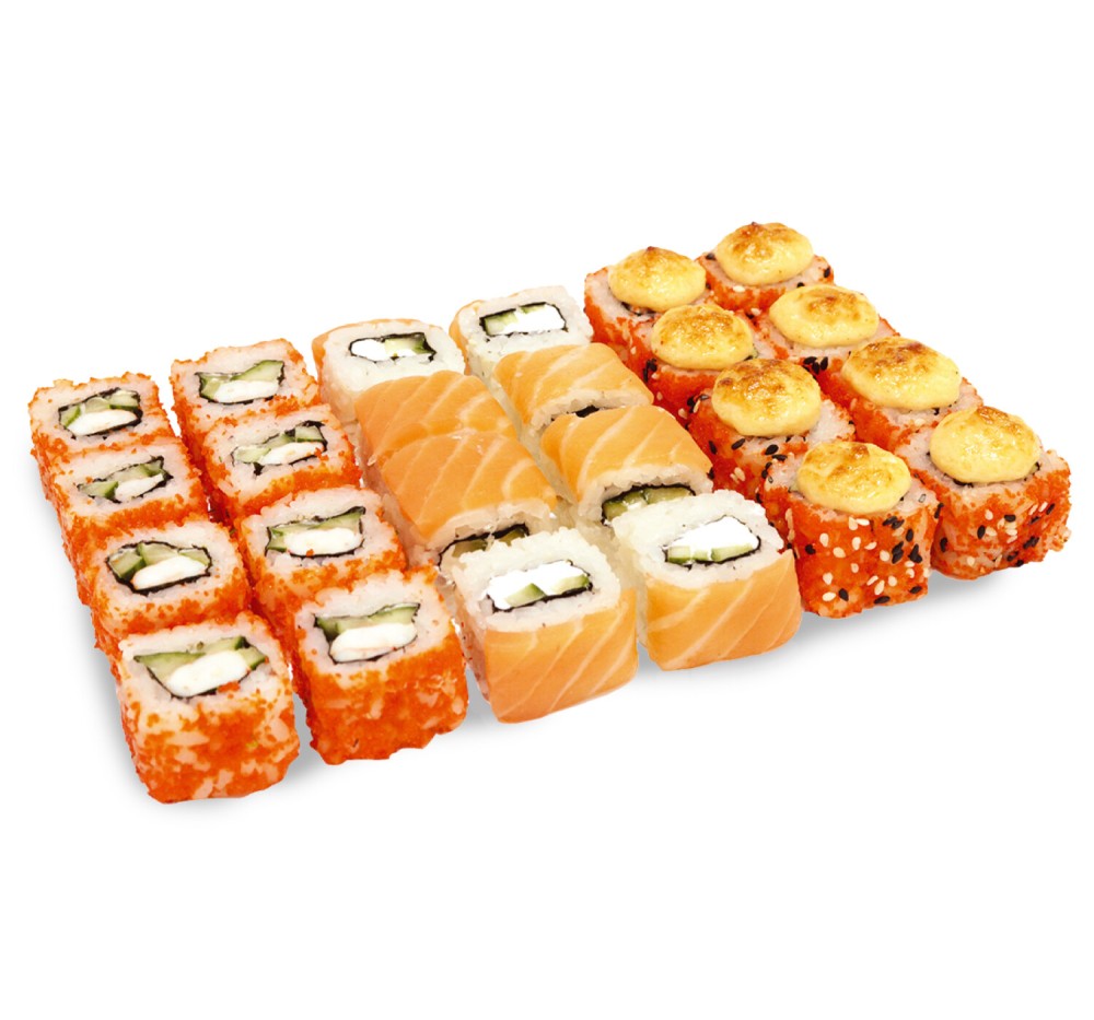 ролл Филадельфия лайт, ролл Калифорния креветка, ролл Тори Кинг запечённая