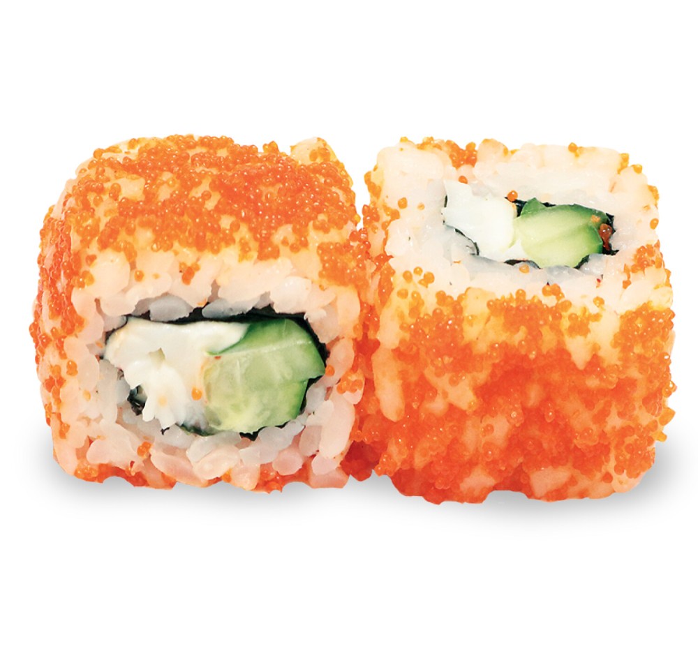 тигровая креветка, масаго оранжевая, огурец, соус Японский