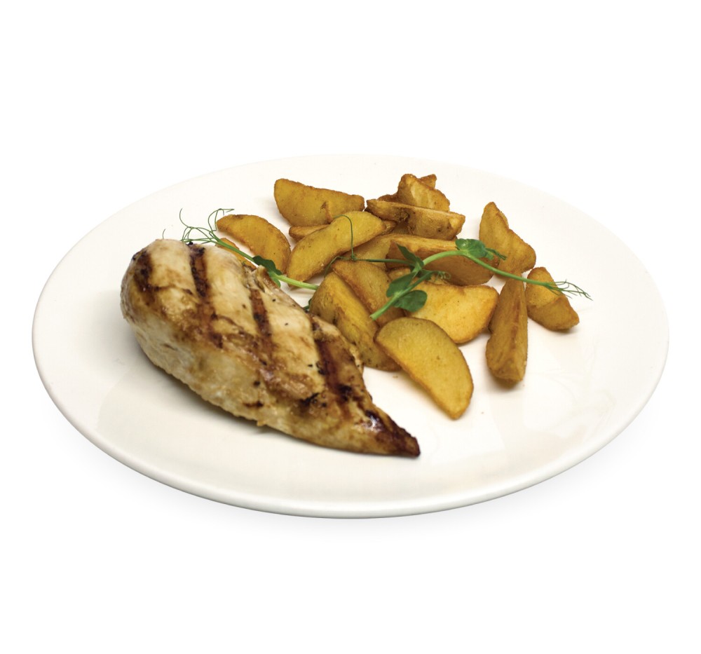 филе куриной грудки со специями, картофельные дольки